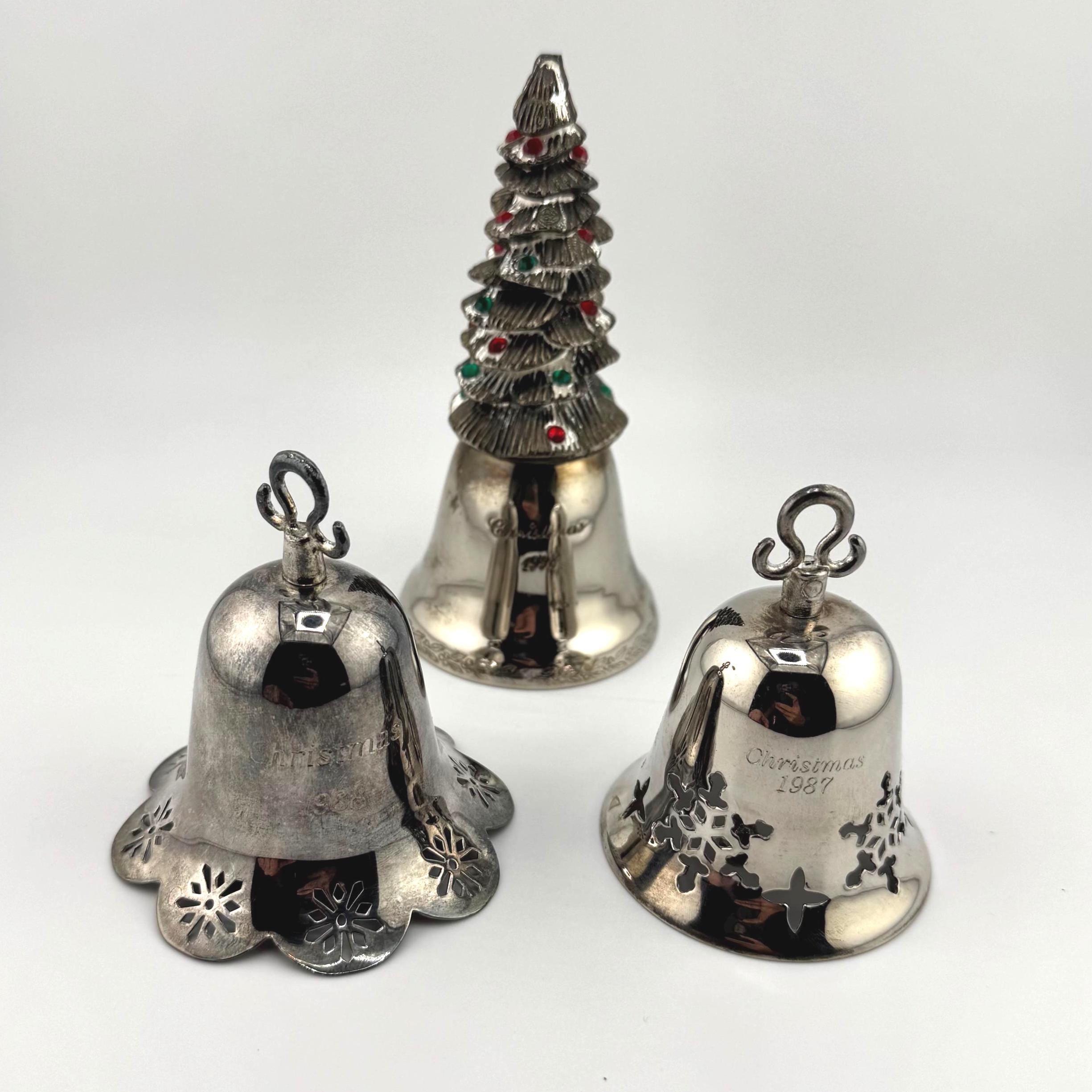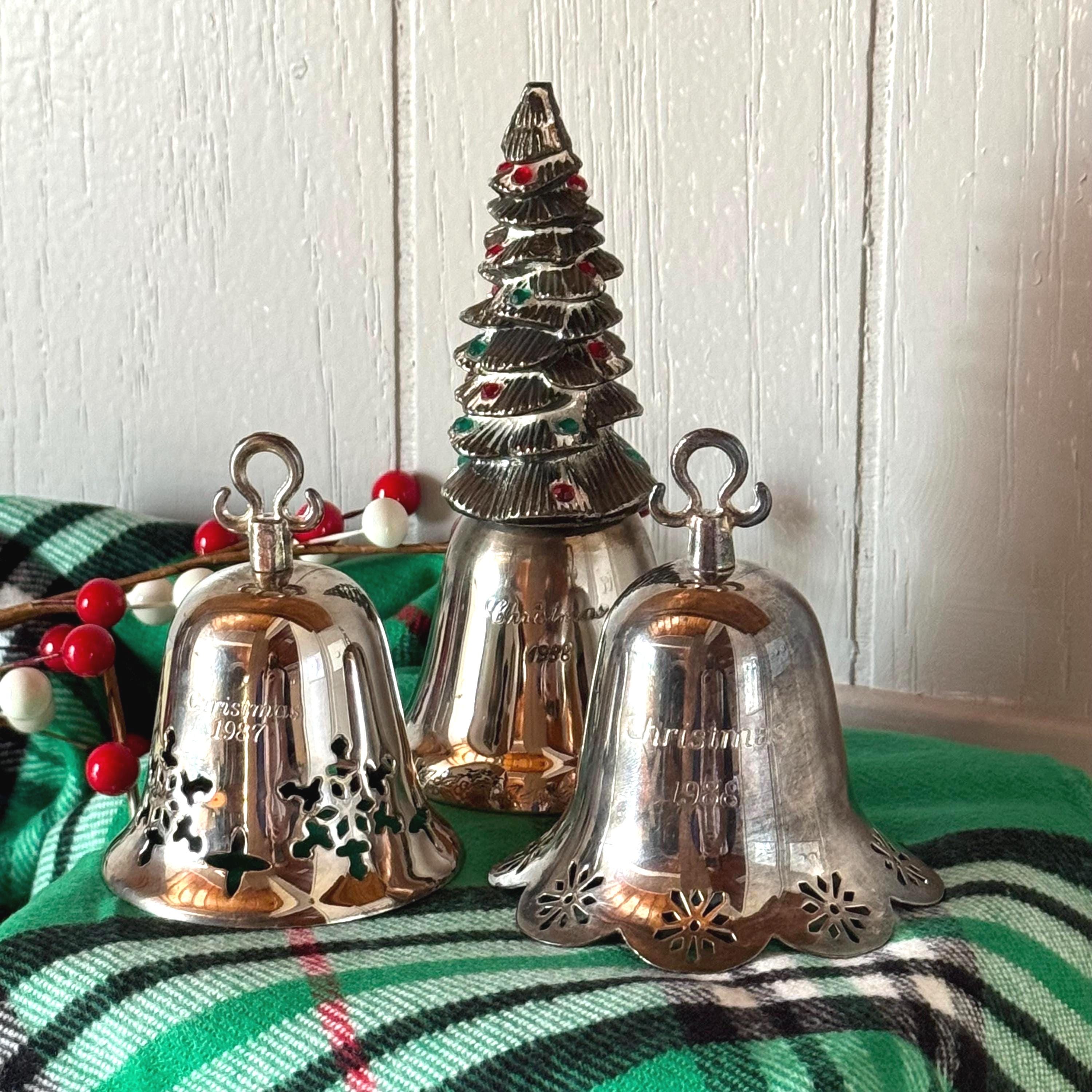 Celebrate the holiday season with these three vintage silver plated Christmas bell ornaments, each engraved with a different year: 1987, 1988, and 1998. These collectible bells will all add a beauty to your Christmas collection. The Madison Avenue Holiday Tree Bell is third in a series and feature a timeless design perfect for seasonal decorating. Each bell has a classic silver finish with engraved detailing, making them elegant additions to your tree, wreath, or holiday display. Whether you’re a collector of dated ornaments, building a set of bells, or looking for unique vintage Christmas décor, these bells bring nostalgia and sparkle to your celebrations.