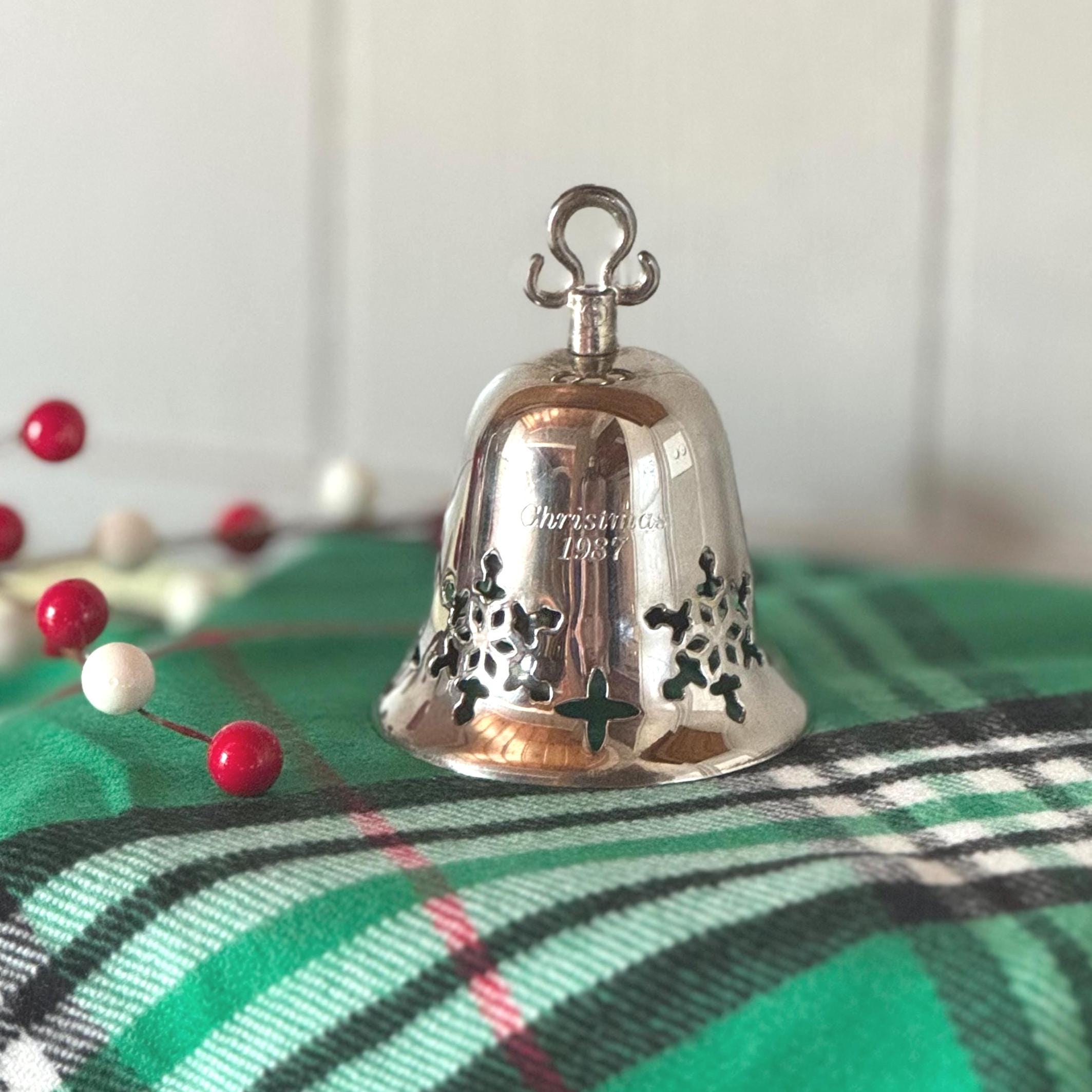A. 1987 Lillian Vernon Silver Plate Christmas Ornament Bell 3.25"