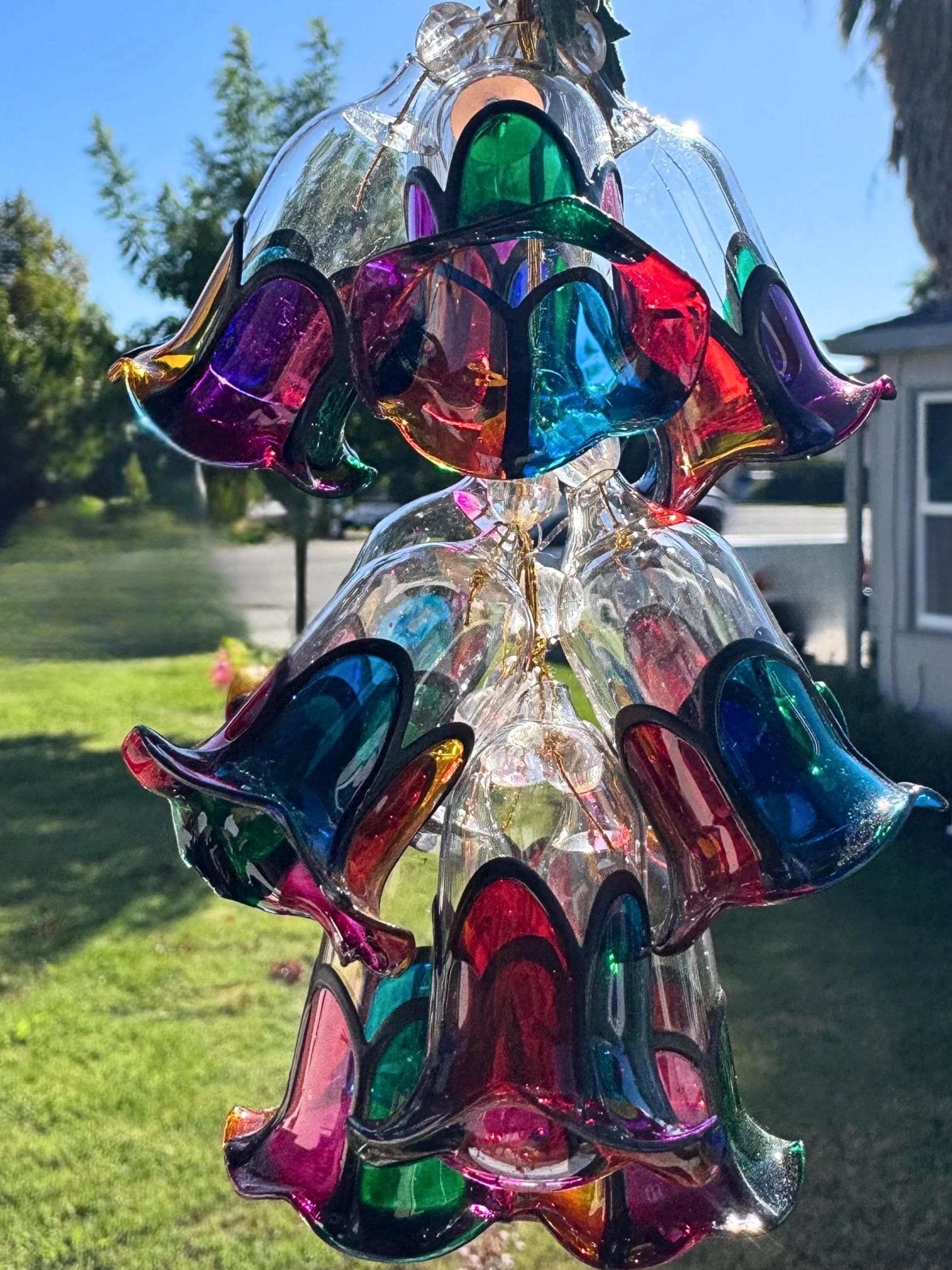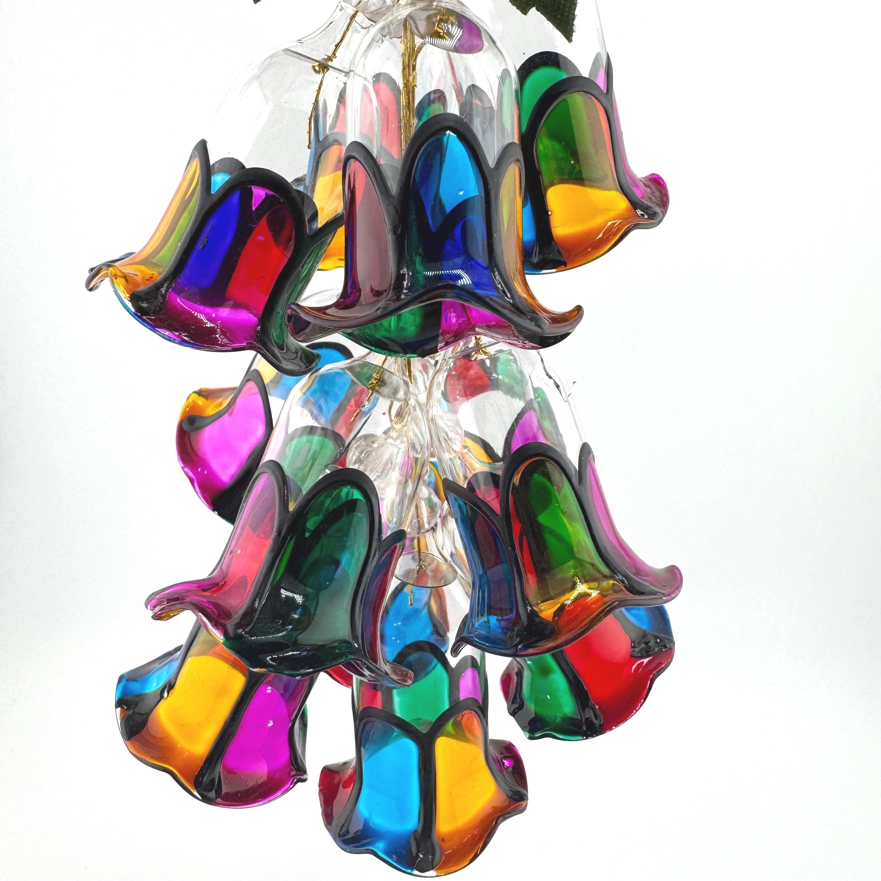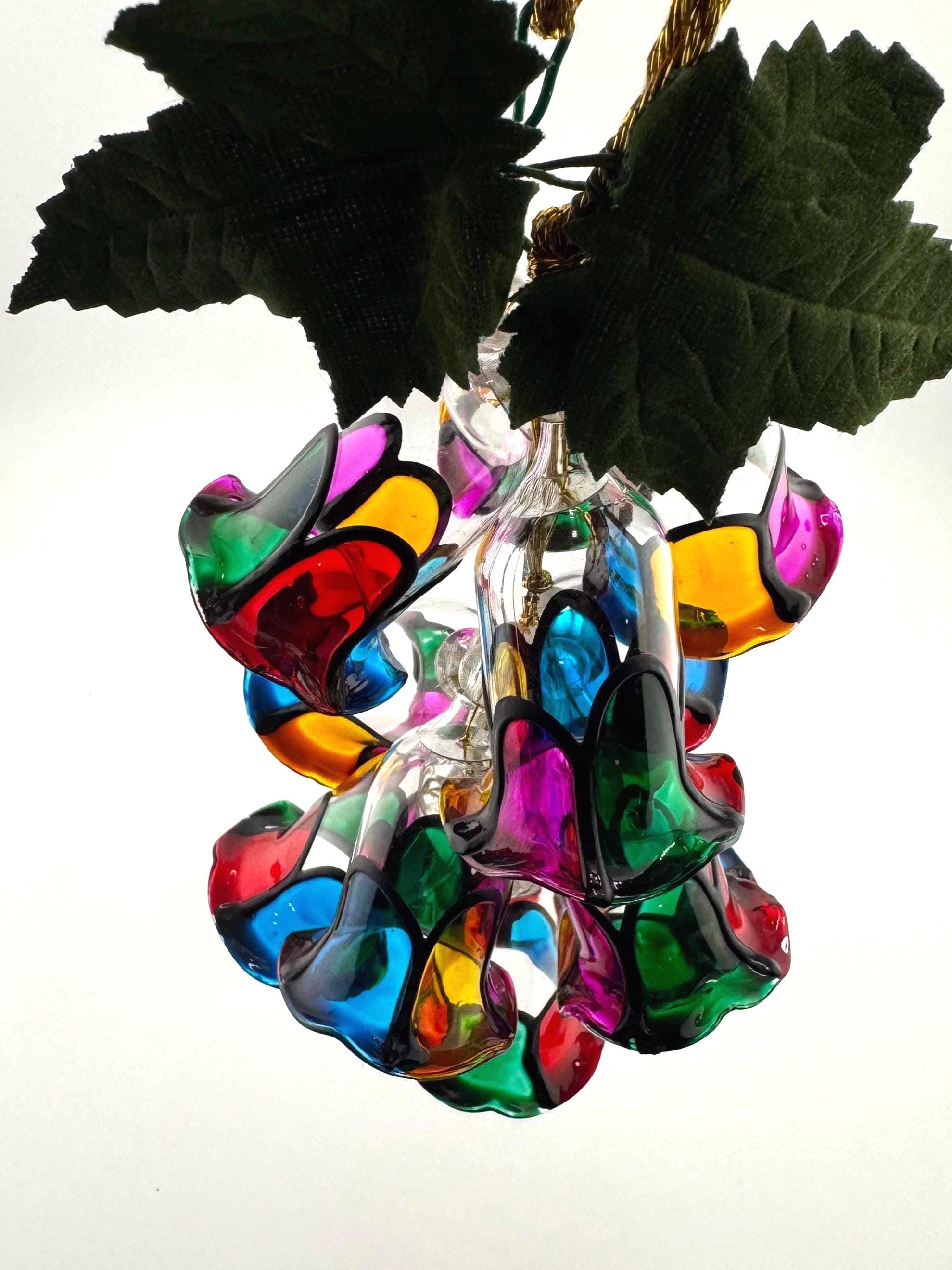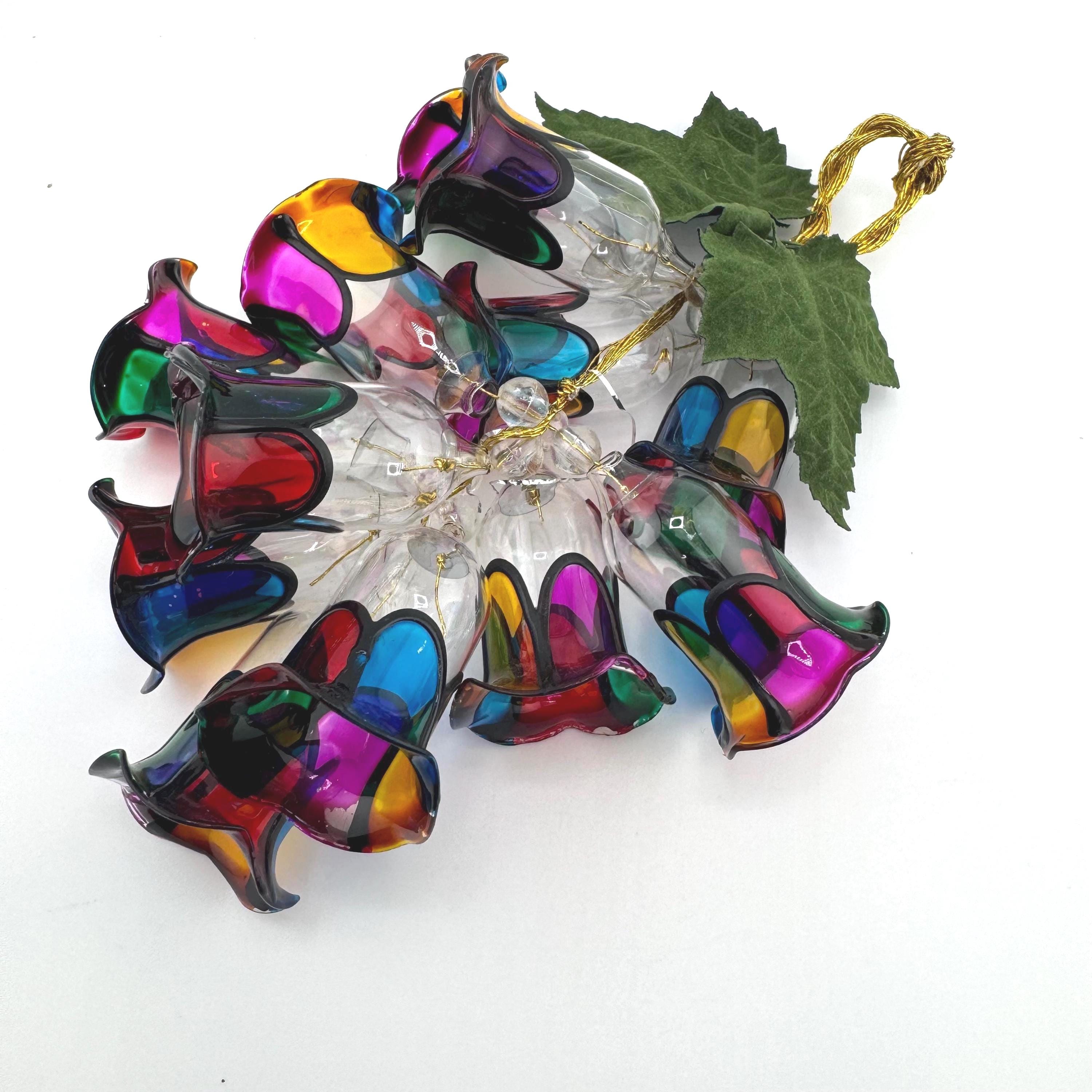 Design: Multicolor stained glass style bell cluster with leaves