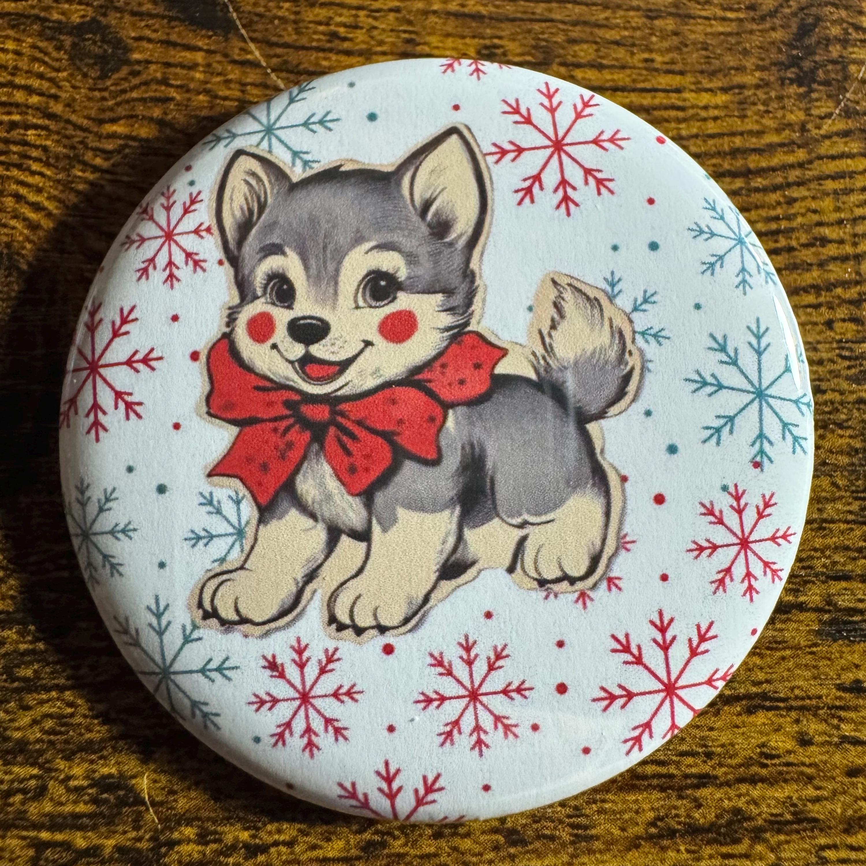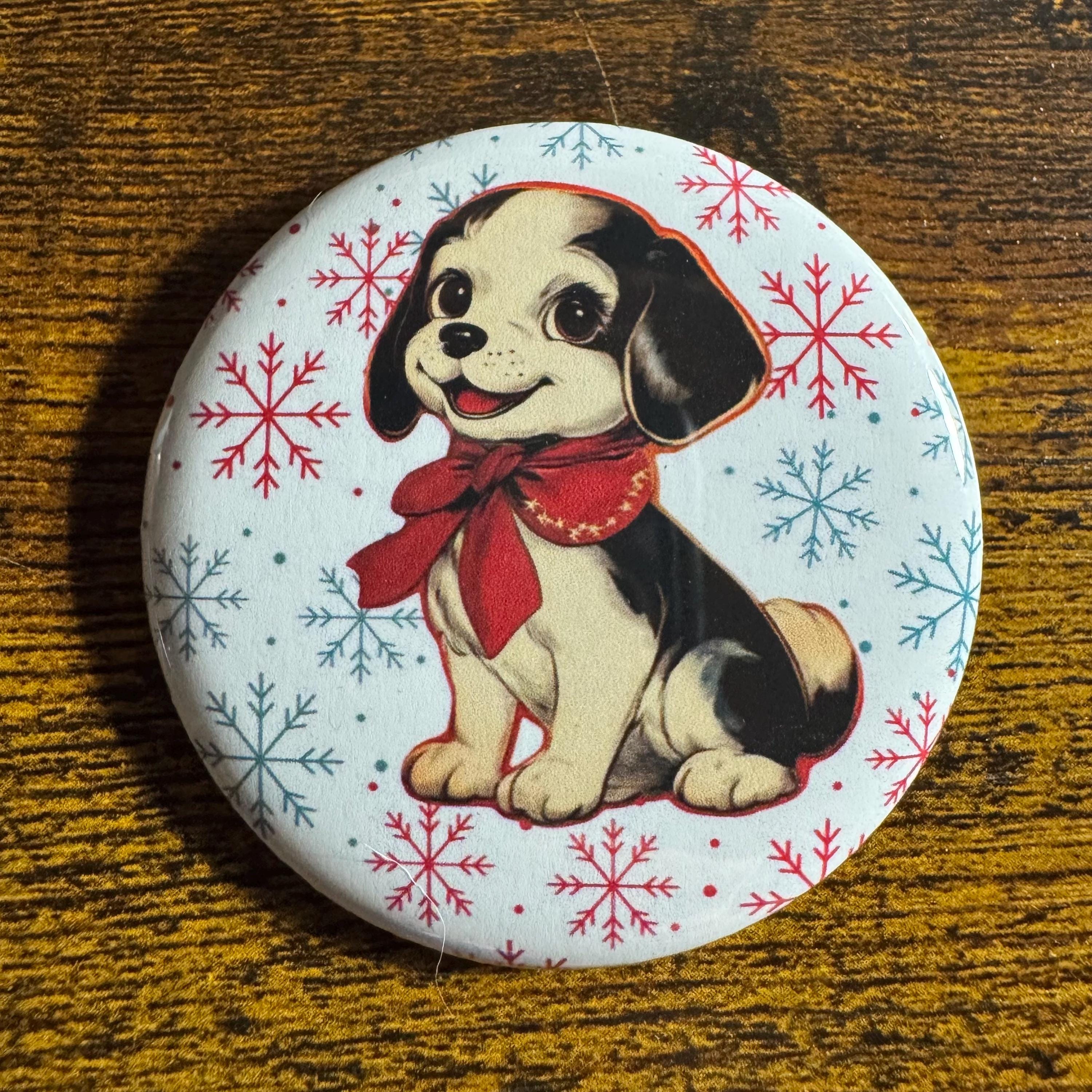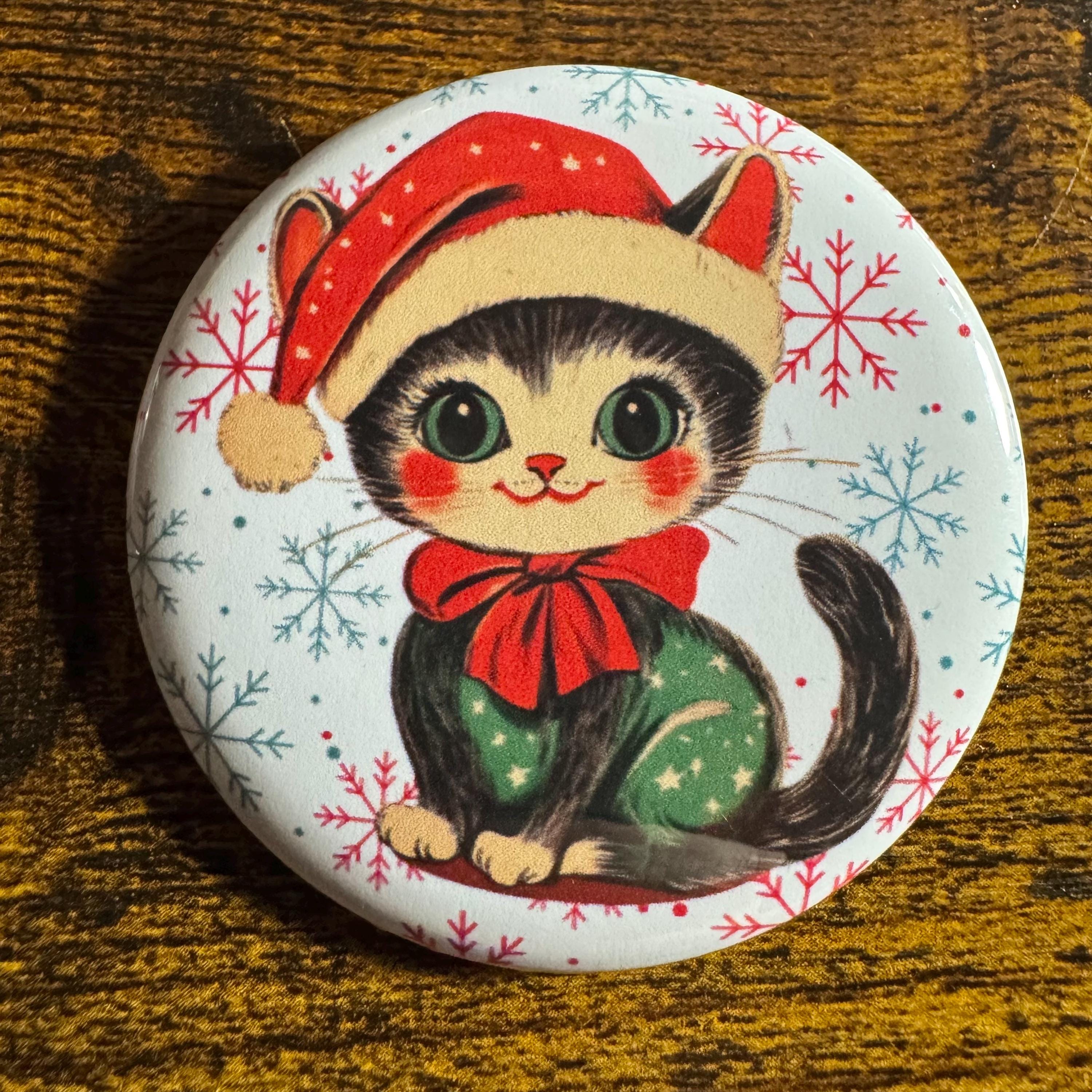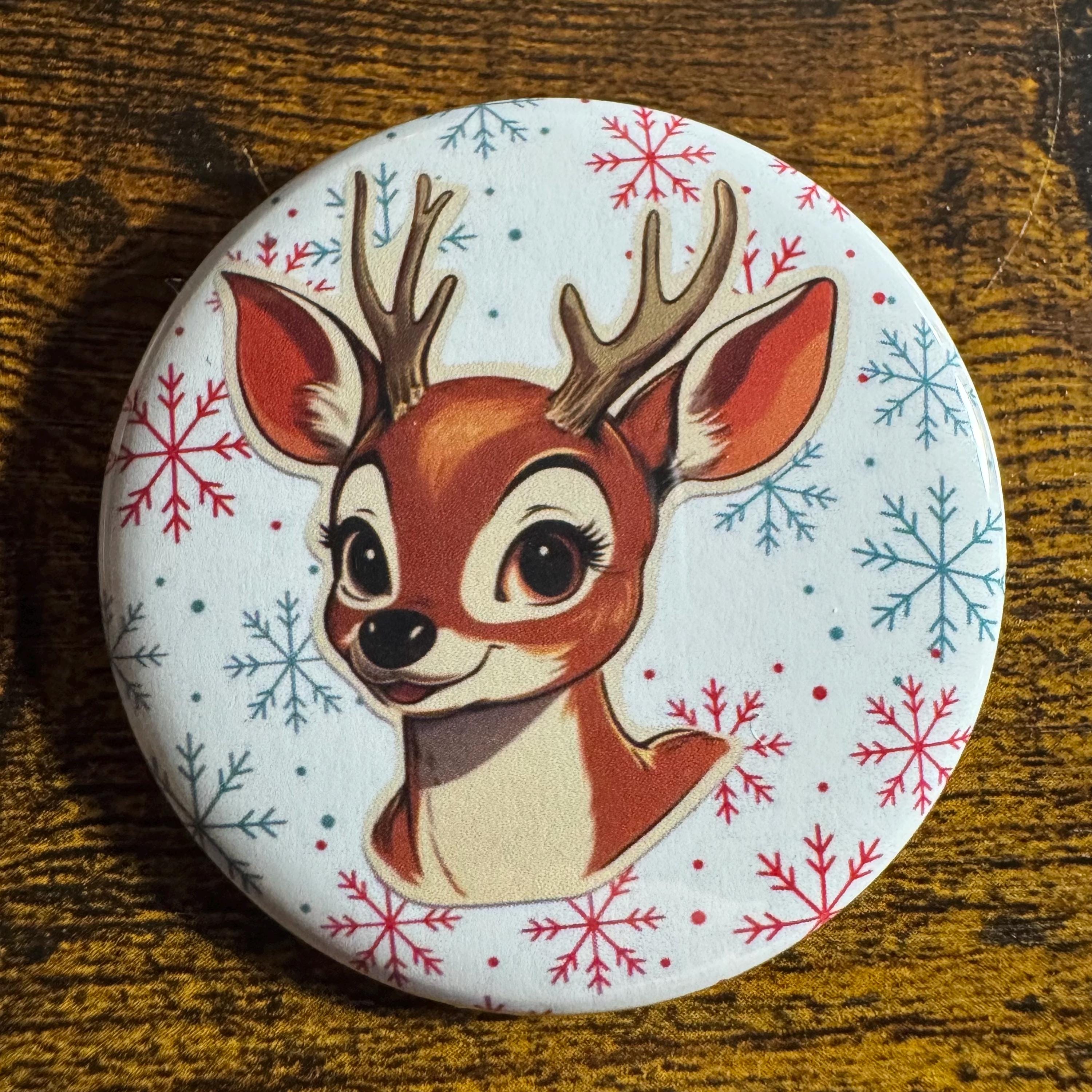 These 2.25-inch pinback buttons, keychains, magnets, mirrors, and bottle openers feature retro-inspired holiday designs that capture the fun, nostalgia, and magic of the season. Perfect for spreading cheer or adding a festive touch to your bag, fridge, jacket, or vanity!