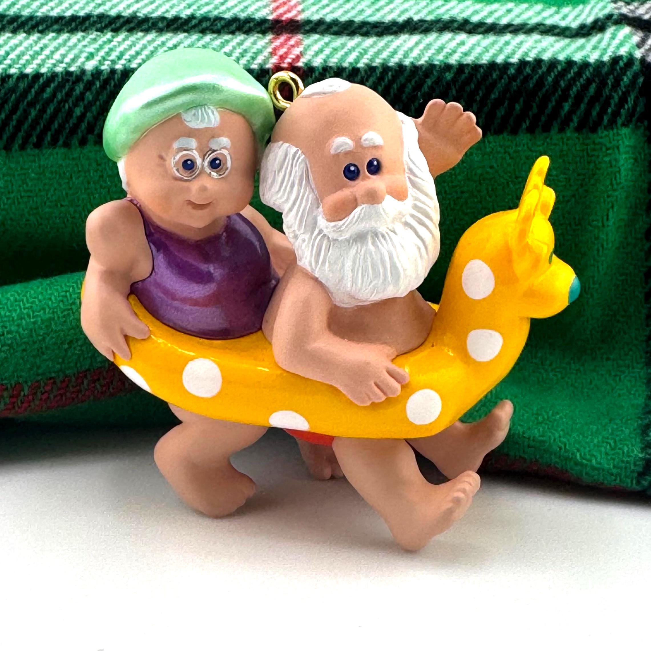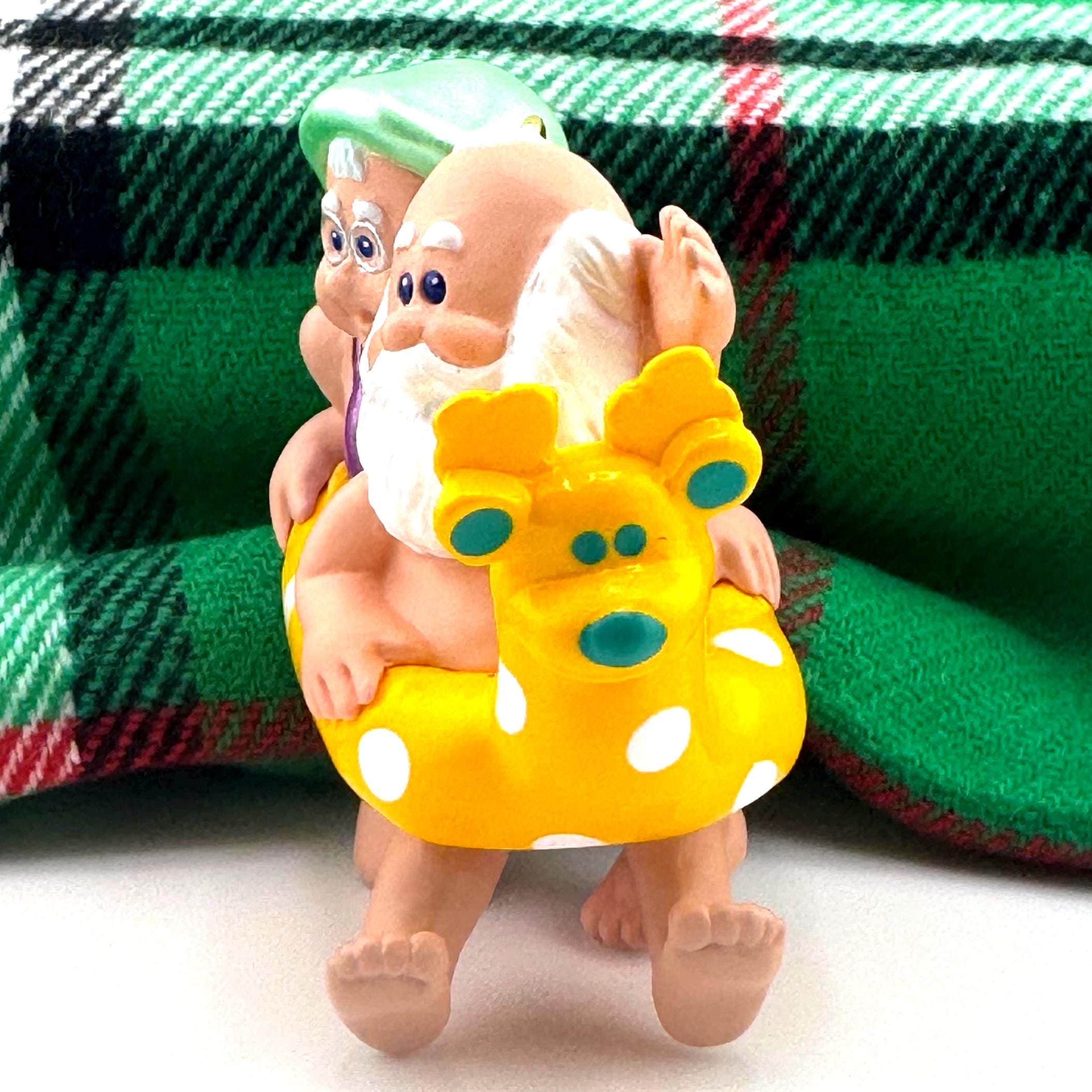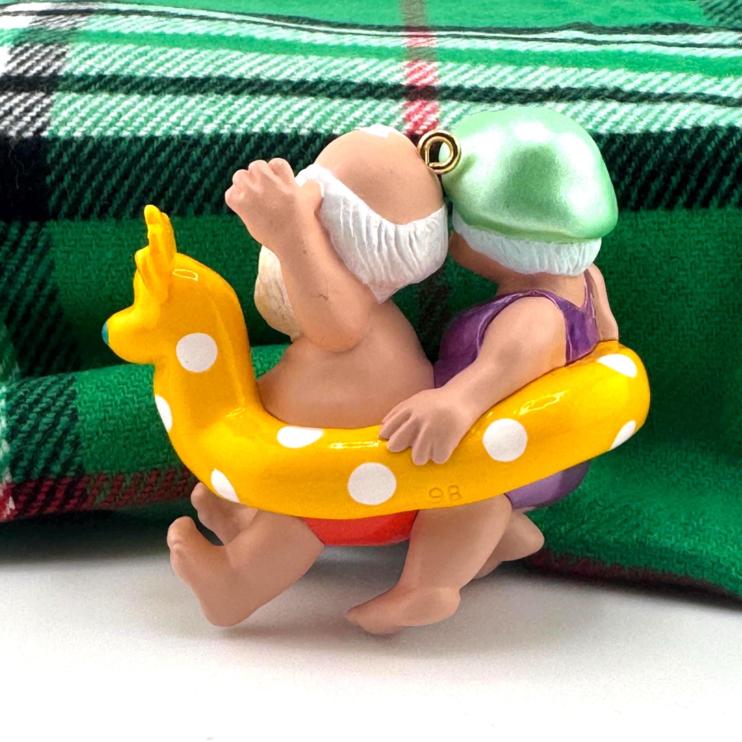 - 1995 “Christmas Eve Kiss” – a heartwarming ornament showing Mr. and Mrs. Claus sharing a sweet holiday moment before Santa’s big night.