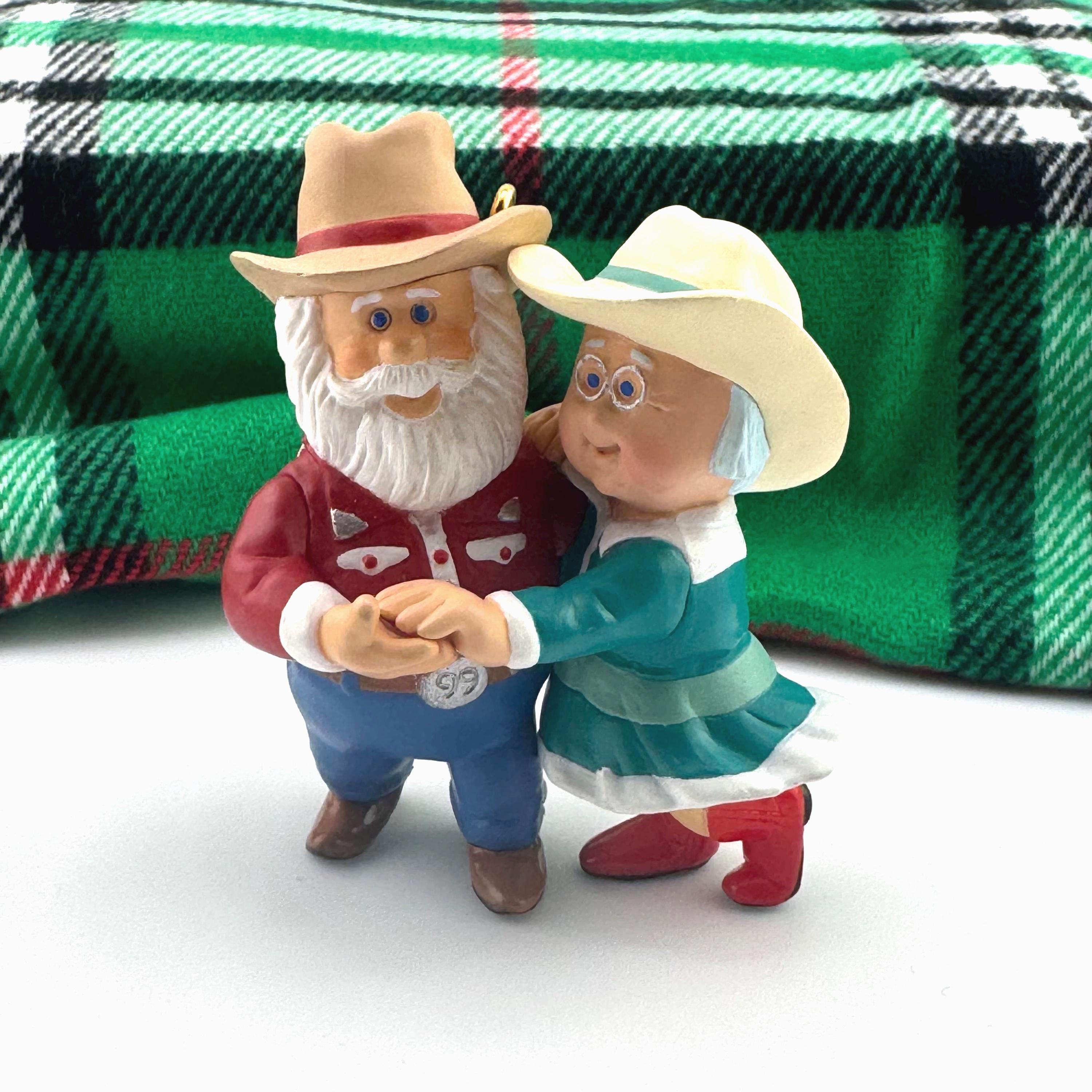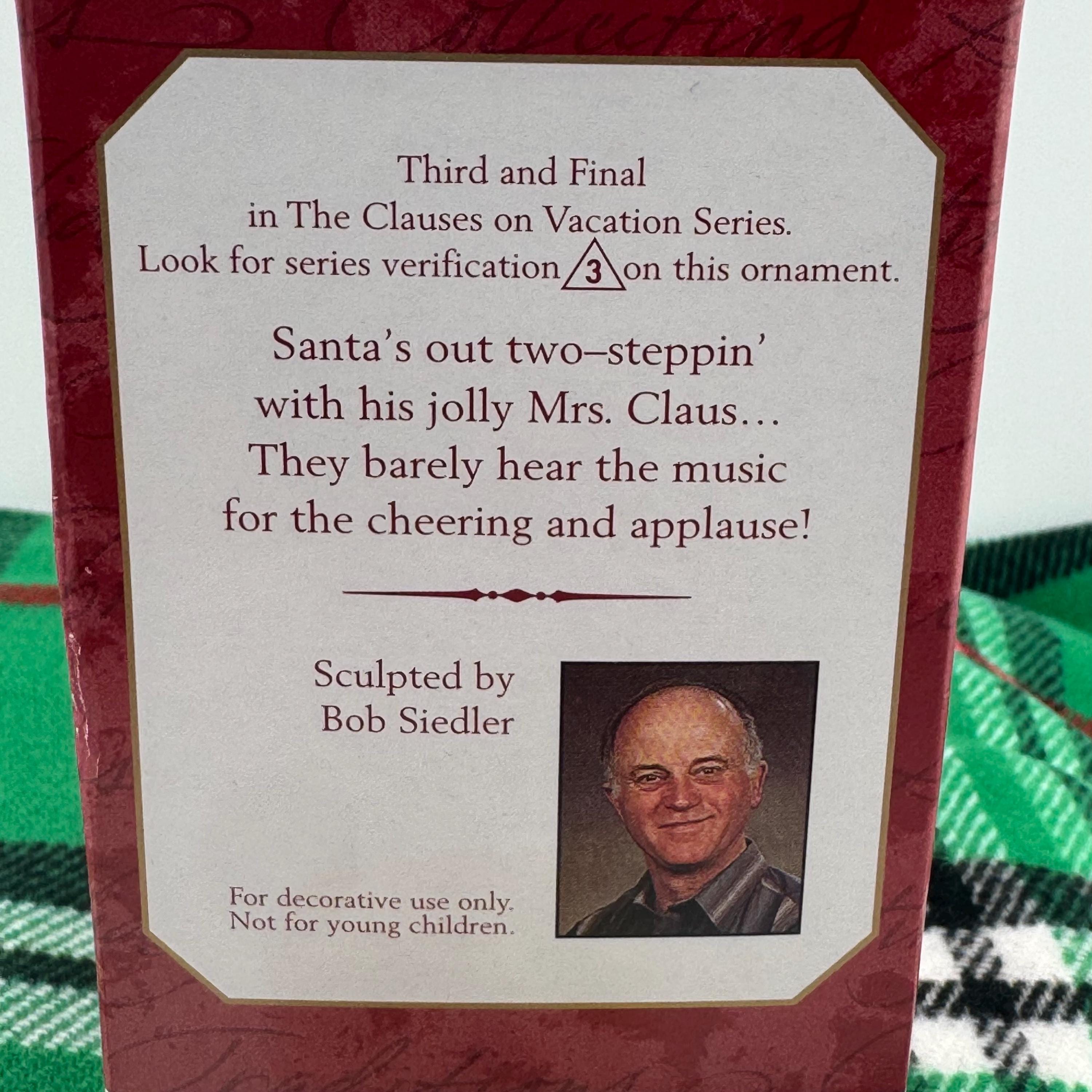 1999 “The Clauses on Vacation” – another delightful entry in Hallmark’s series, with Santa and Mrs. Claus enjoying some country time dancing with their boots and hats on.