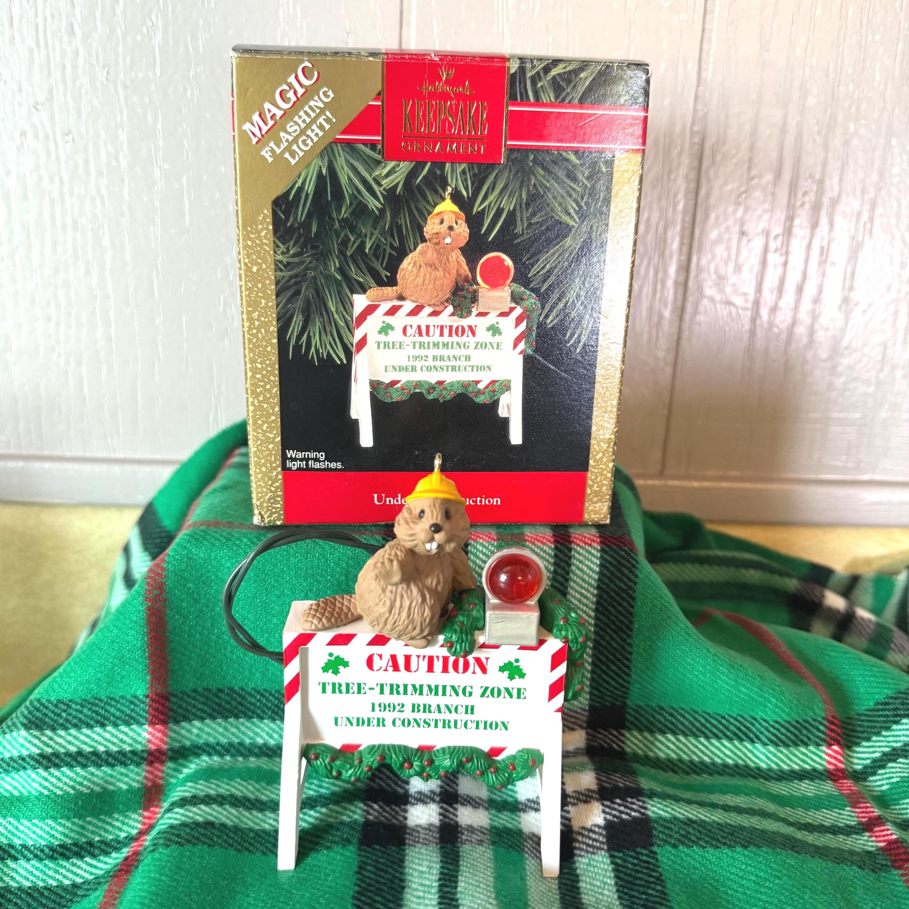 - 1992 “Under Construction” Beaver Ornament – Another adorable beaver ornament, with a flashing light and is in preparation of trimming the Christmas tree.