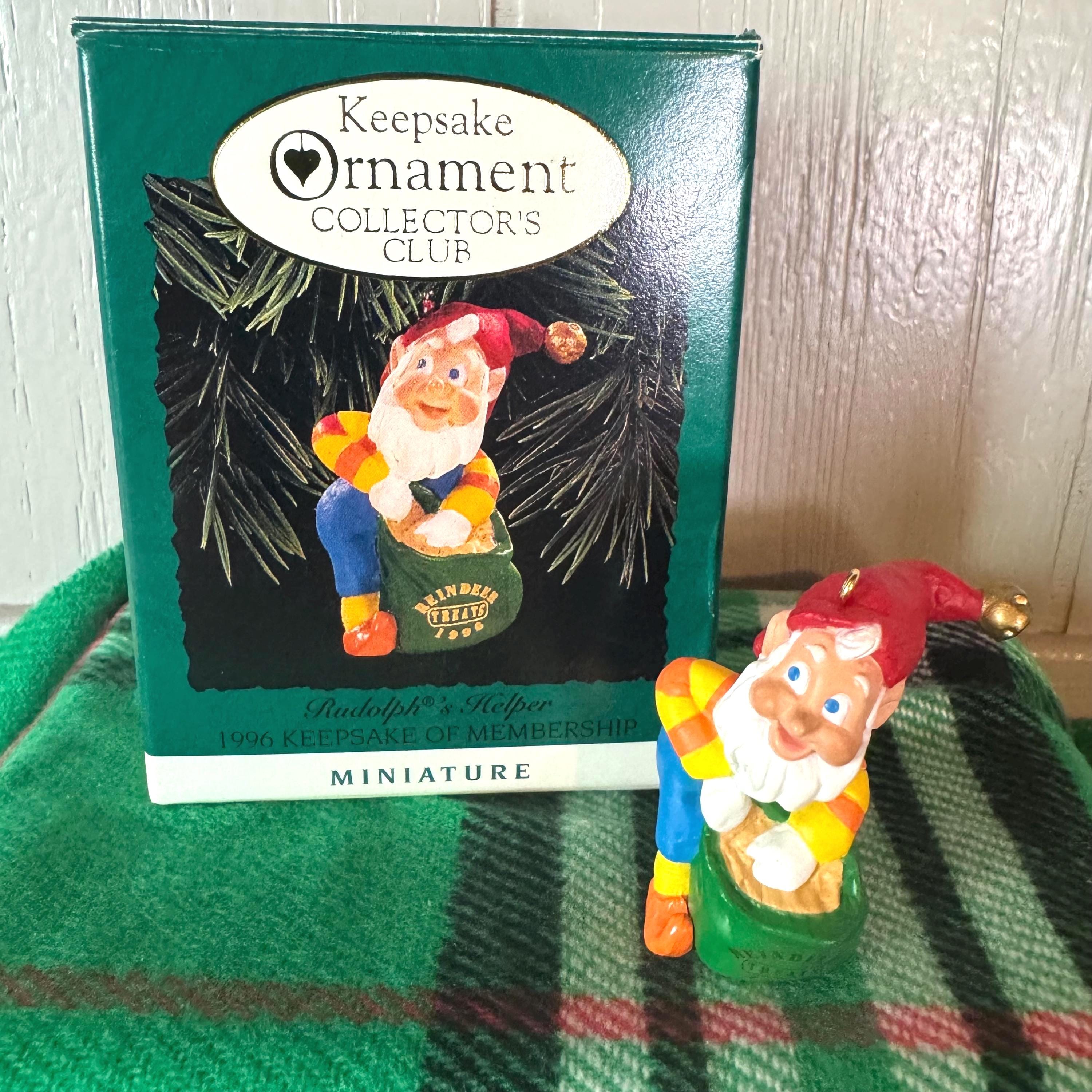 - 1996 “Rudolph’s Helper” – A cheerful little elf helping Rudolph get ready for Christmas Eve, full of bright color and whimsical energy. This is a miniature.