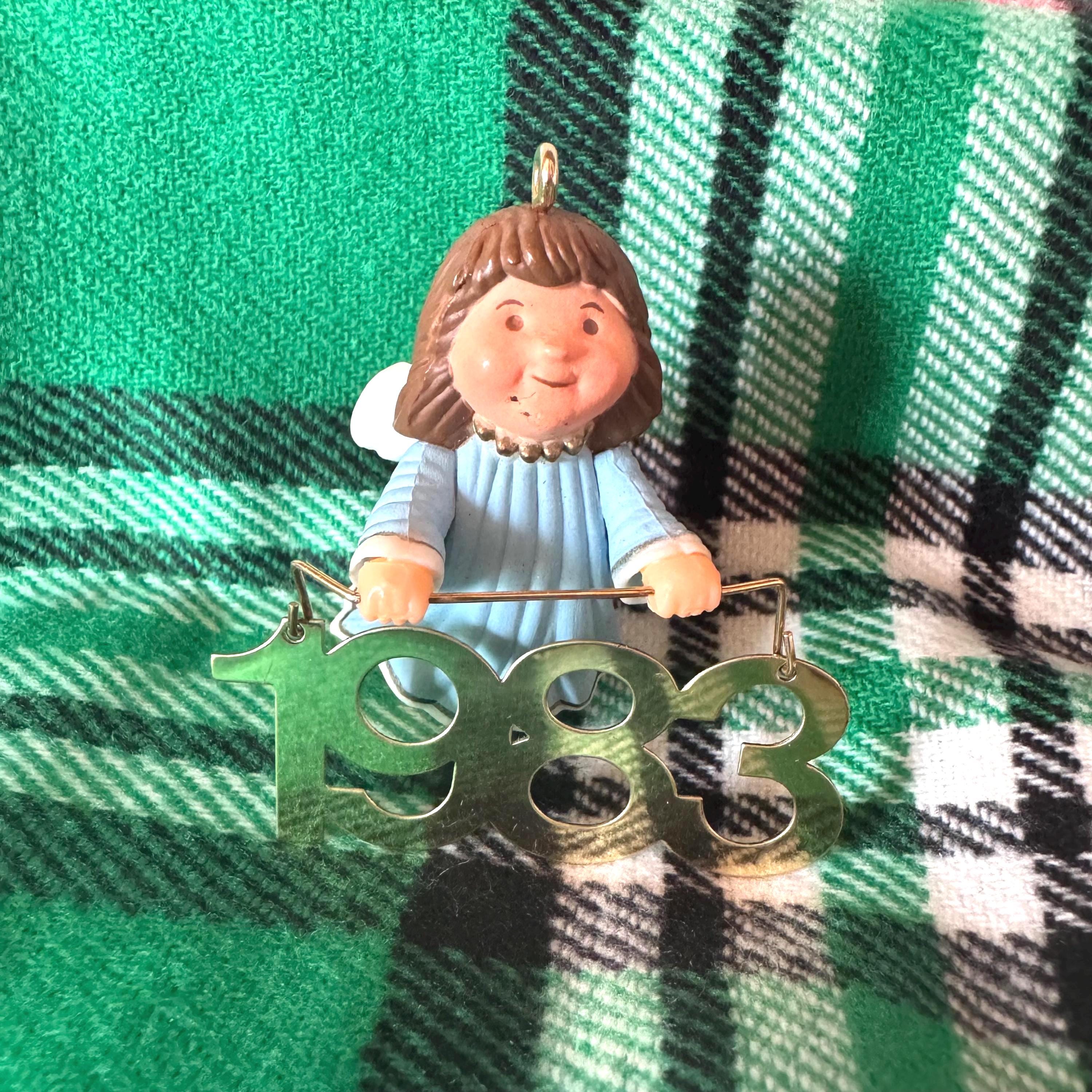 - 1983 “Angel Messenger” with Banner – A beautifully classic ornament from the early Hallmark era, depicting a smiling angel holding a banner that reads "1983"